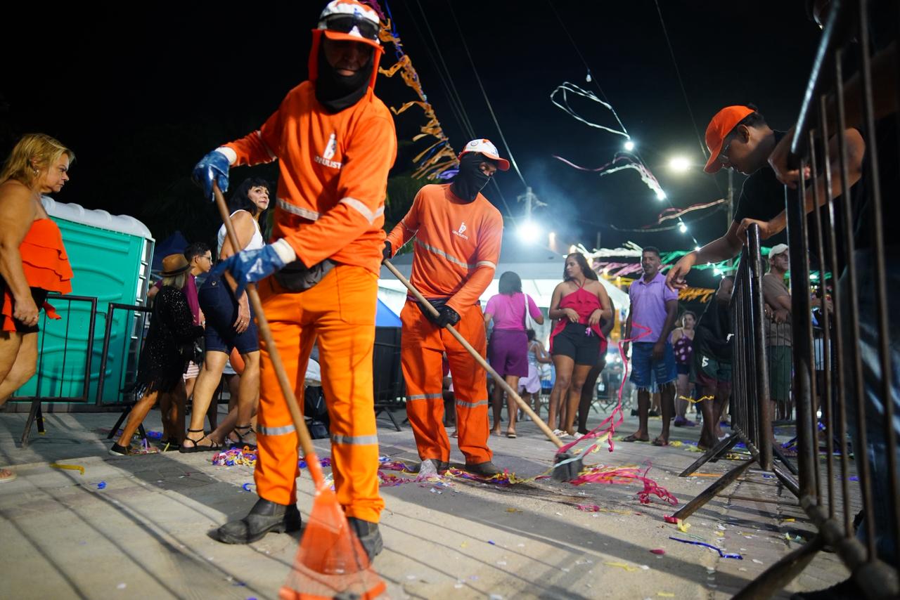 A limpeza urbana também foi prioridade durante o período momesco. Segundo a Secretaria de Obras e Serviços Públicos, foram recolhidas 1.307 toneladas de lixo domiciliar, 807 toneladas de entulhos e 34 toneladas de materiais provenientes de podações. Ao todo, mais de 2.148 toneladas de resíduos foram retiradas das vias públicas e encaminhadas para o descarte adequado.