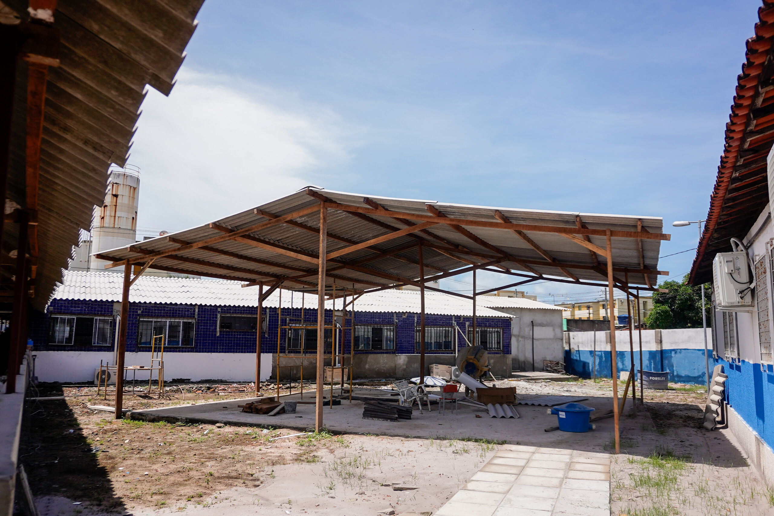 Toda a nova estrutura está sendo executada em concreto, visando maior durabilidade e funcionalidade dos espaços. As intervenções também priorizam a acessibilidade e a organização dos fluxos internos, contribuindo para um ambiente mais adequado às atividades pedagógicas.