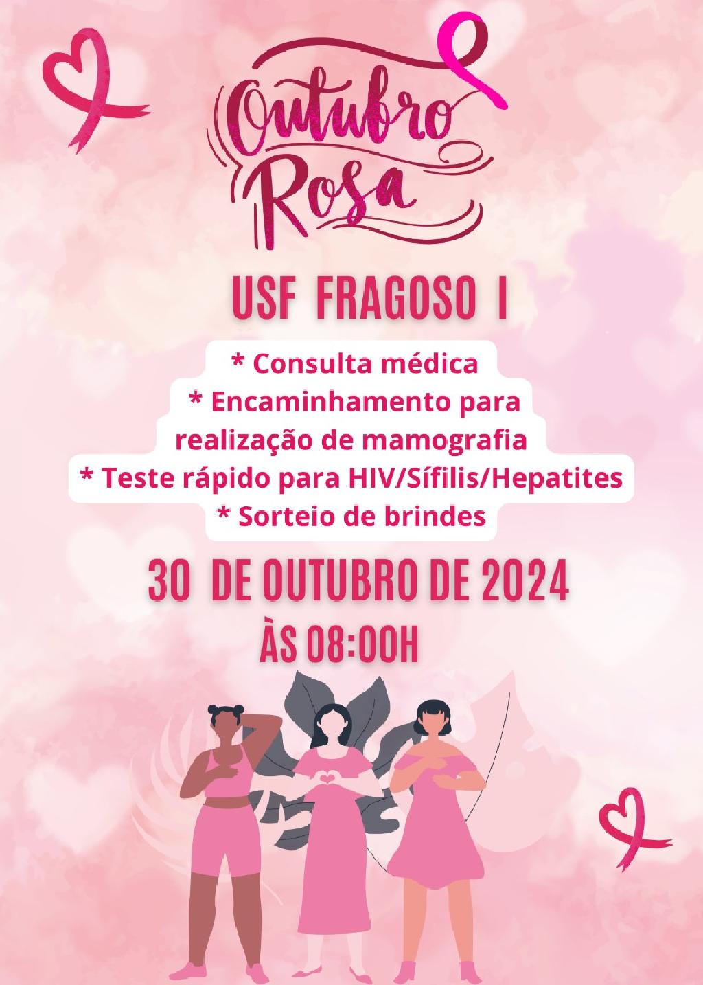 A Unidade de Saúde da Família (USF) Sítio Fragoso I promove, nesta quarta-feira (30), uma programação especial voltada para a saúde e bem-estar das mulheres. A ação, que faz alusão ao Outubro Rosa, contará com atividades e diversos serviços, e terá o apoio da Secretaria Municipal de Saúde do Paulista.