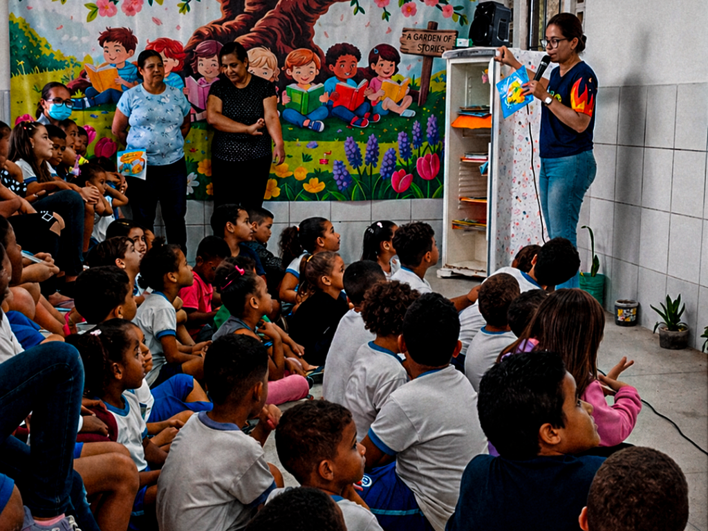 Durante a inauguração, os estudantes participaram de momentos de leitura e contação de histórias. A atividade despertou curiosidade e entusiasmo entre as crianças, que puderam explorar o acervo e interagir com os livros de maneira lúdica.