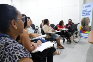 Com o objetivo de criar e fortalecer protocolos de acolhimento e referência voltados para mulheres em situação de violência e vulnerabilidade social no município do Paulista, o Grupo de Trabalho (GT) da Mulher do Paulista reuniu-se na última quinta-feira (19) com a equipe de um dos Núcleos Estaduais de Prevenção Social (NEPS), da Secretaria de Justiça, Direitos Humanos e Prevenção à Violência do Governo de Pernambuco. Os NEPS são unidades descentralizadas que concentram iniciativas voltadas à prevenção social, com base na perspectiva da Segurança Cidadã e mediação de conflitos. O encontro aconteceu na sede do IFPE – Campus Paulista, em Maranguape I.