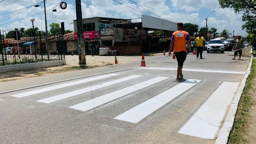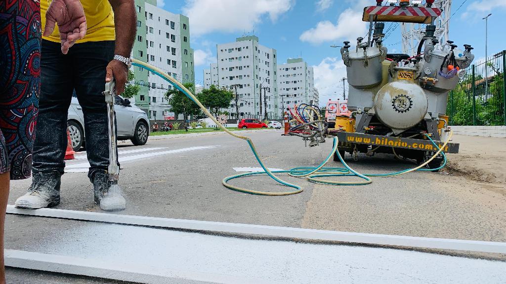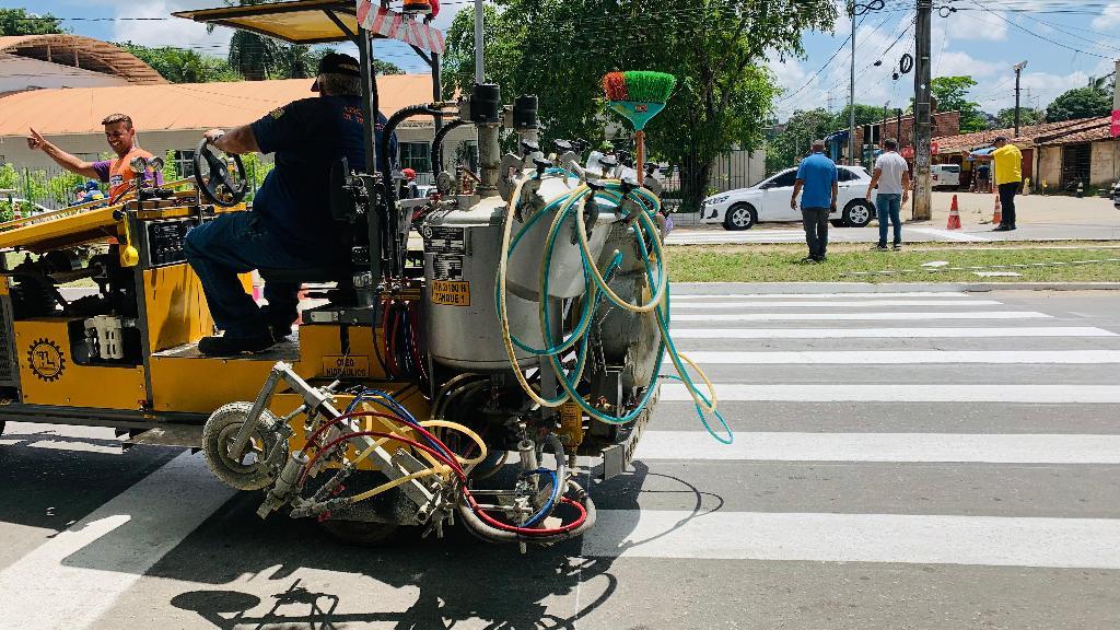 Considerado o principal corredor da localidade, a pista começou a receber sinalização horizontal com pintura das faixas de pedestre, lombadas e e linha de bordo.