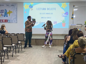 Durante a abertura, os profissionais também participaram de uma contação de história inspirada na obra “Os Sete Novelos”, da autora Angela Shelf, reforçando a literatura como ferramenta de sensibilização, conexão e formação de leitores.