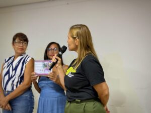 O encontro também foi marcado por um momento de emoção com a homenagem à servidora Fernanda Santos, que se aposentou após 33 anos dedicados à educação. A trajetória da profissional foi reconhecida pelos colegas e pela equipe da Secretaria, em reconhecimento à sua contribuição para o fortalecimento das bibliotecas escolares no município.