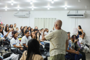 O gerente de Apoio Discente e Articulação Comunitária, Cássio Souza, enfatizou a relevância do protagonismo estudantil no desenvolvimento das ações do programa.