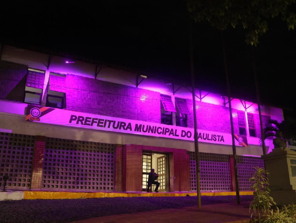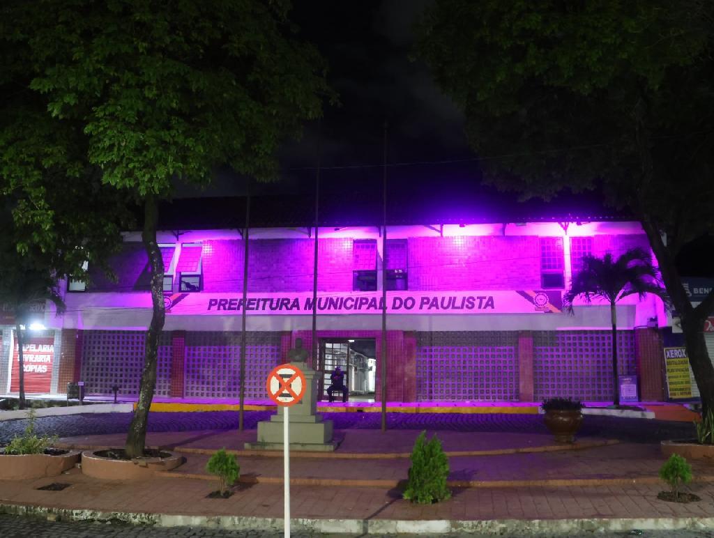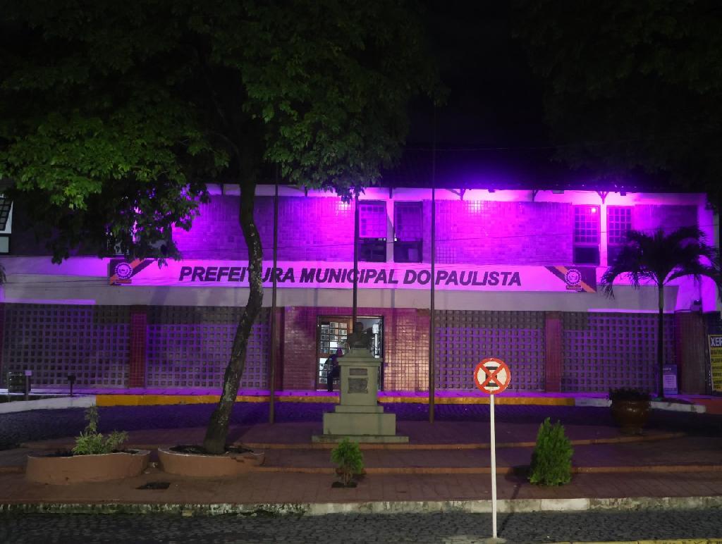 Prefeitura do Paulista recebe iluminação especial pelo Agosto Lilás
