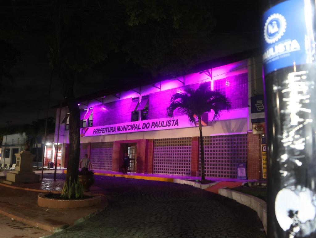 Prefeitura do Paulista recebe iluminação especial pelo Agosto Lilás