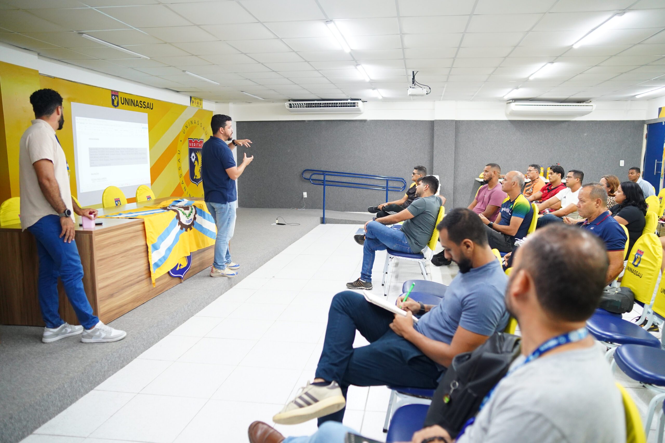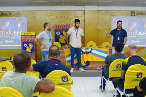 Professores de Educação Física das redes municipal e estadual participaram, nesta quarta-feira (11), de uma reunião de alinhamento para a realização da seletiva municipal dos Jogos Escolares de Pernambuco (JEPs) em Paulista. O encontro ocorreu no auditório do Centro Universitário UNINASSAU, localizado no centro da cidade, e reuniu representantes das escolas que participarão da competição.