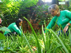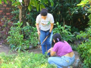 “A gente aqui tá cuidando desse manejo e preparação do solo dessa horta, fazendo a retirada das plantas invasoras, renovando essa cultura das nossas plantas medicinais”, explicou Rayza Brasileiro, diretora do Núcleo de Sustentabilidade Urbana do Paulista.