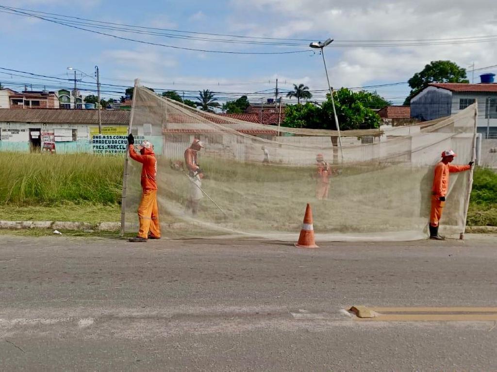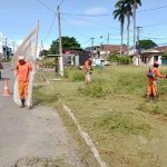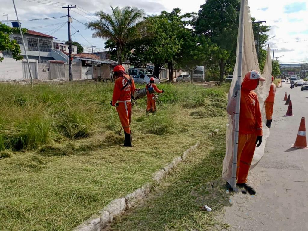 Equipes da Superintendência Municipal de Limpeza Urbana estão executando atividades de capinação e remoção de entulhos na localidade.