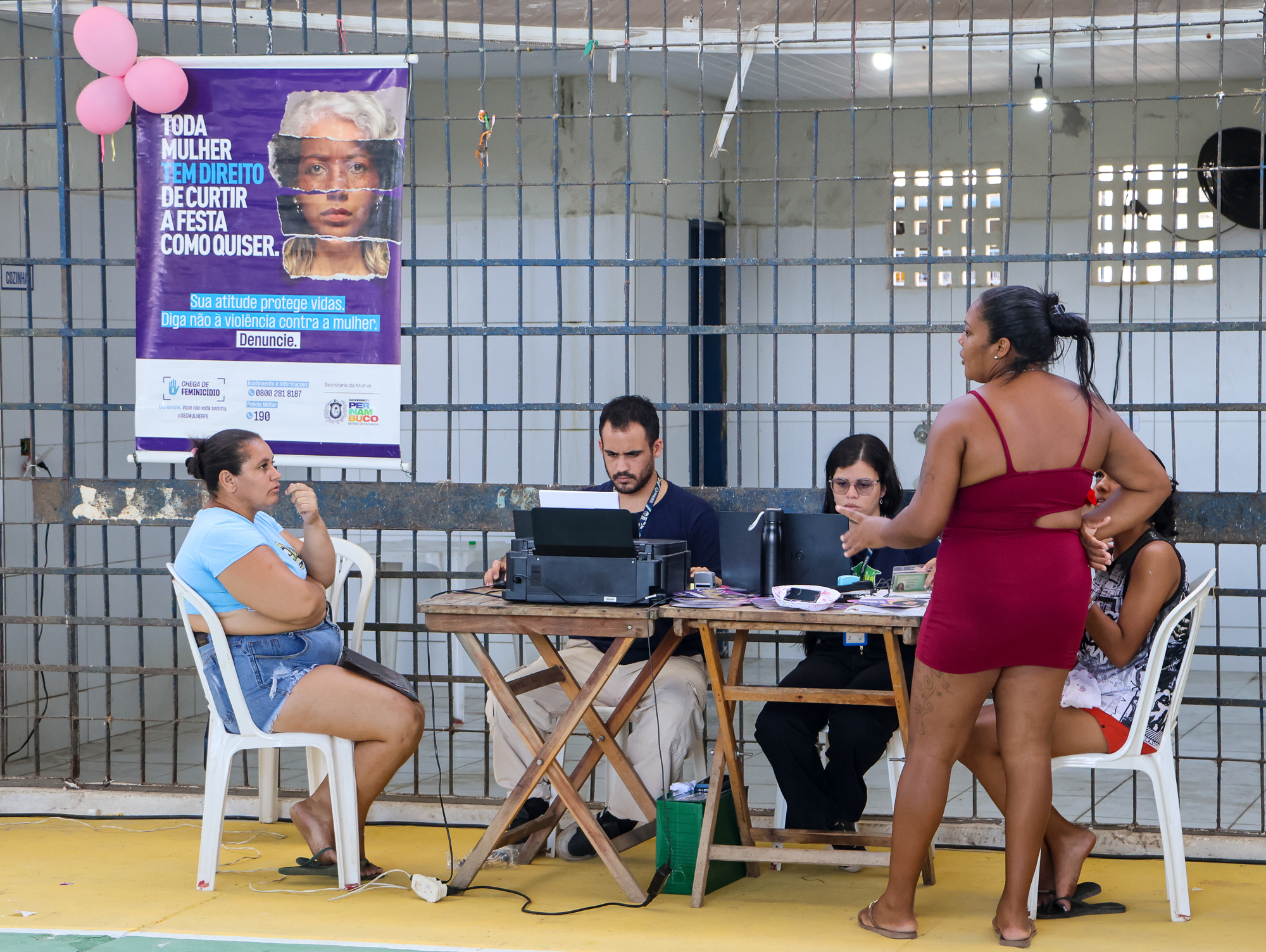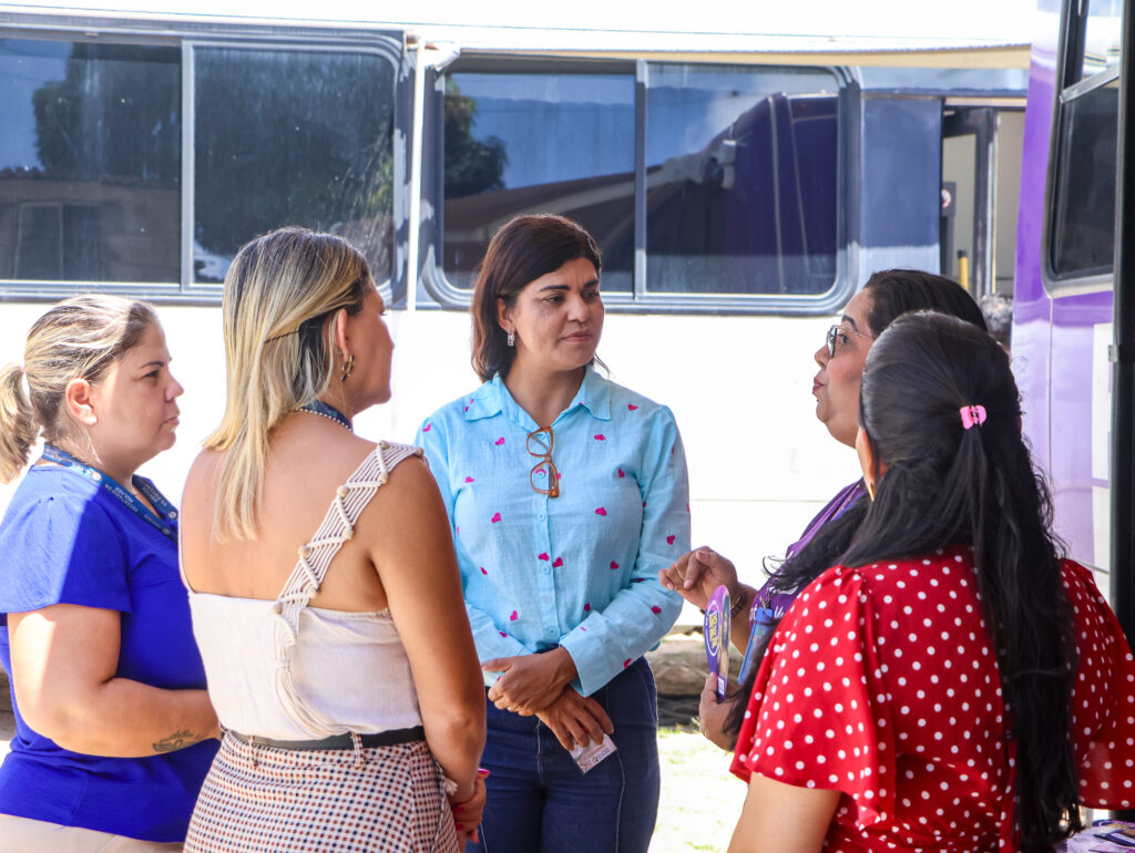 “Esta é a nossa unidade móvel itinerante, onde estamos oferecendo todo acolhimento às mulheres vítimas de violência e que queiram tirar dúvidas. Temos disponível uma equipe multidisciplinar composta por advogados, psicólogos e assistentes sociais”, detalhou a coordenadora regional metropolitana da Secretaria Estadual da Mulher, Renata Espíndola.