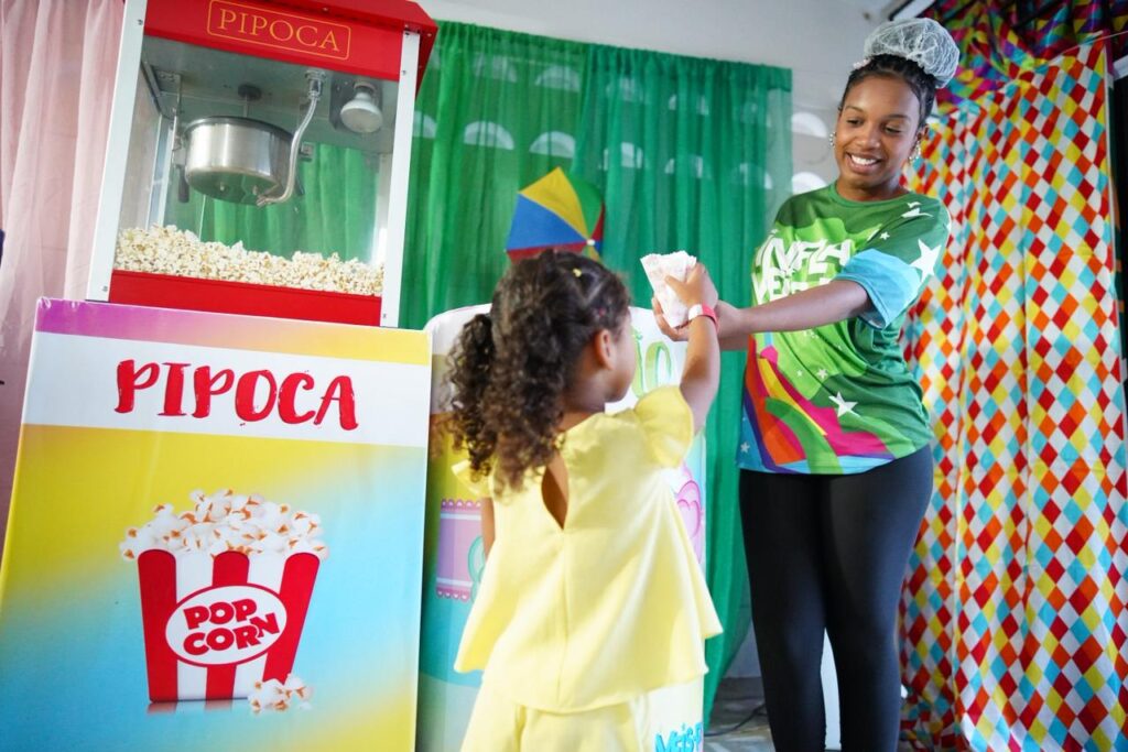 Também está em funcionamento o Espaço de Proteção Infantil, destinado aos filhos de ambulantes e pequenos comerciantes que trabalham durante a festa, oferecendo ambiente seguro, alimentação e atividades recreativas.