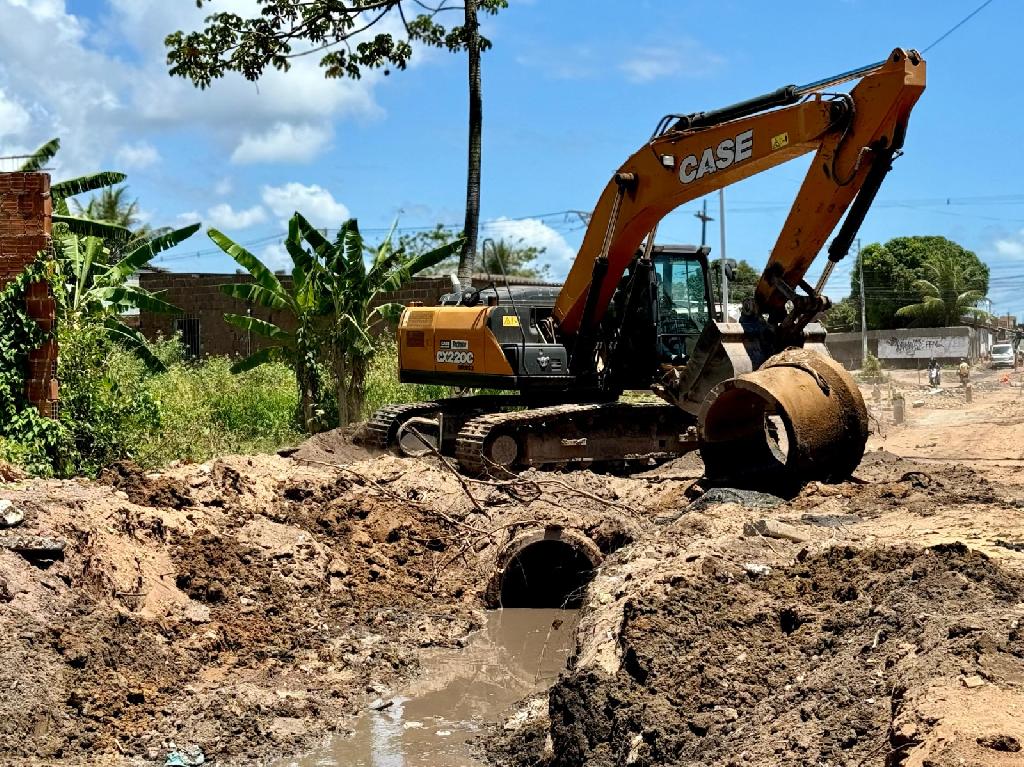 “Depois da ponte, no segundo trecho, está em execução a regularização da terraplenagem. E ainda, em execução a drenagem onde será construído um bueiro para escoar as águas do canal que liga a Rua Manuel de França”, explicou.