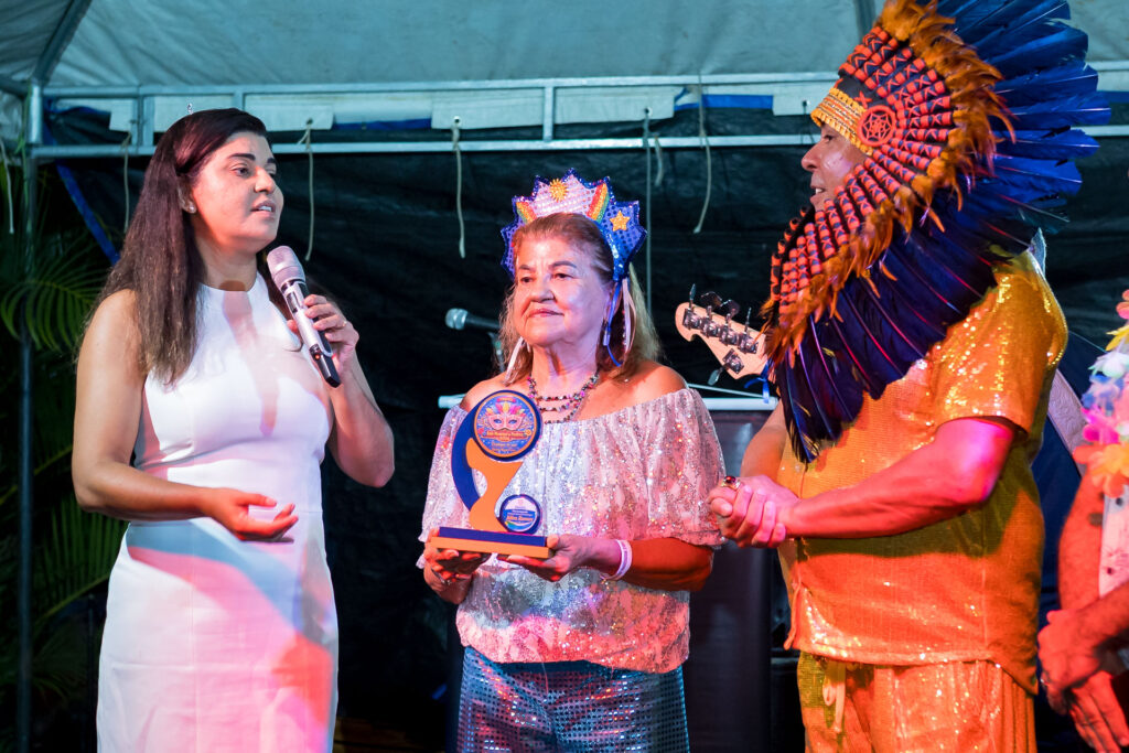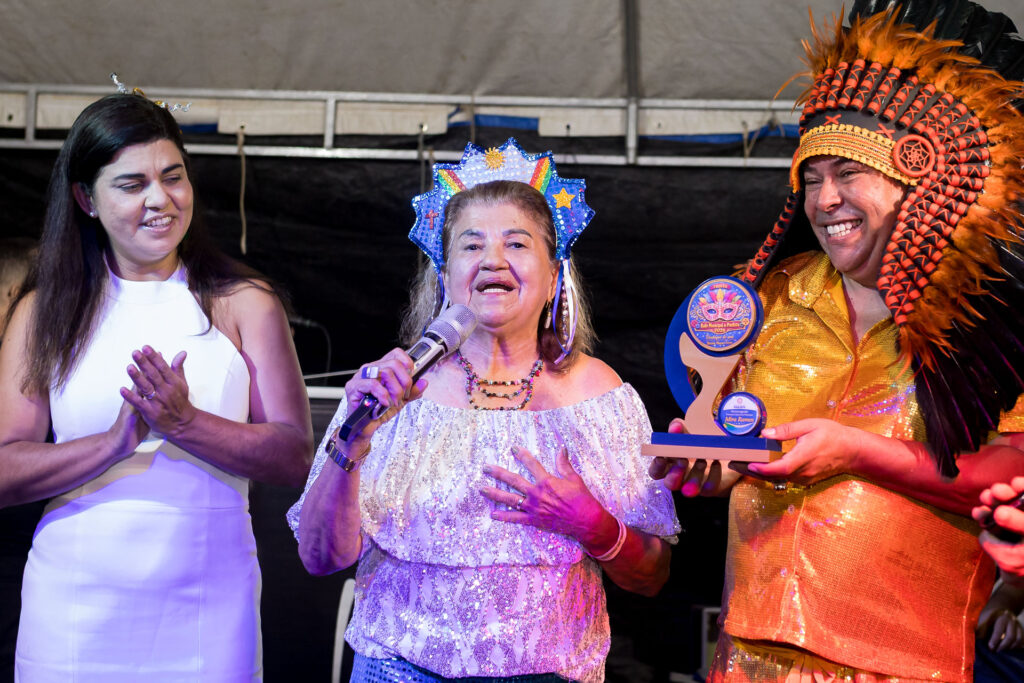 A primeira-dama do município, Aldemira Rodrigues, esposa do prefeito Severino Ramos, foi uma das homenageadas da noite, reconhecida pelo apoio às manifestações culturais e pelo incentivo aos artistas da terra. A escolha foi destacada pelo organizador do evento, Mozart Ferré, que ressaltou a sensibilidade, a receptividade e o compromisso de Dona Mira com a cultura e com o povo paulistense.